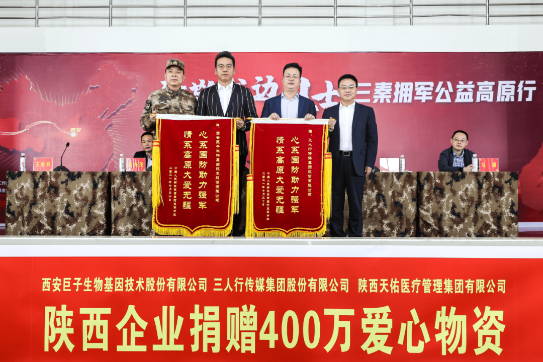 2021年7月30日,“致敬戍边卫士——三秦拥军公益高原行”捐赠仪式在西藏阿里军区隆重举行。阿里地委委员、军分区政委严鑫,阿里地委副书记、行署常务副专员、陕西省政府副秘书长张小平,巨子生物医美事业部总监王医祥,三人行传媒集团股份有限公司创始人、董事长兼CEO钱俊冬等出席了本次活动。