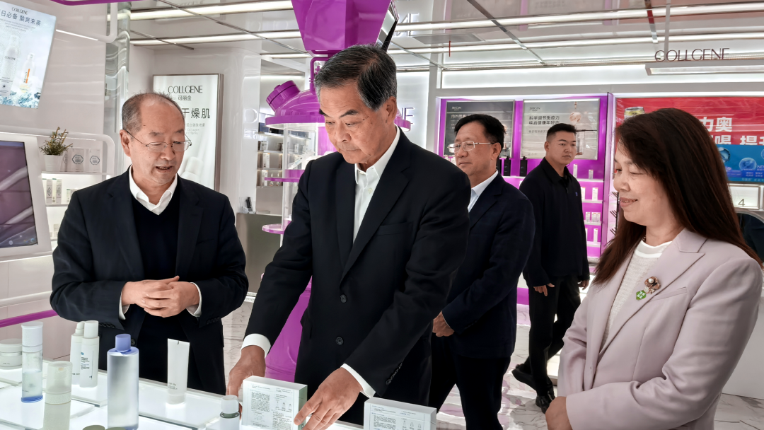 在巨子生物董事长严建亚、首席科学家范代娣等陪同下,调研组参观了企业历史墙、荣誉展厅、生产车间及产品体验间等,重点了解了巨子生物围绕重组胶原蛋白、稀有人参皂苷等自主核心技术所打造的产品矩阵与产业化布局。